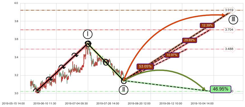 ➢ 循环浪继续向上【最低】位置(09-16:13, 3.488),匹配聚类样本比例20.67%, 可能性概率10.97%