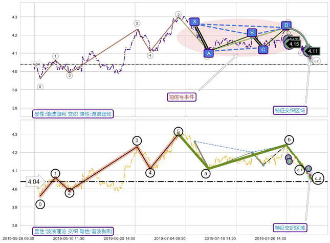 ➢ 谐波伽利属【短级别信号事件】波浪理论属【长级别信号事件】长短周期组合信号事件, 短长事件长度比34.85%