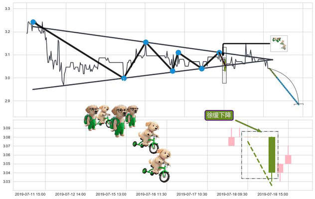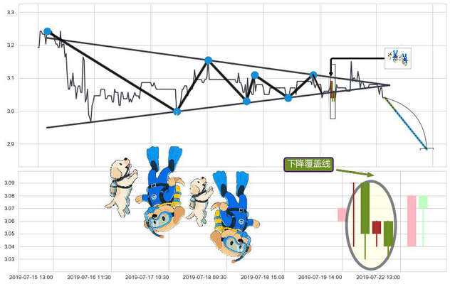 ➢ 🕰 价格走势在2019-07-19 15:00:00至2019-07-22 11:30:00期间形成下降覆盖线,残存影响值:-3.33