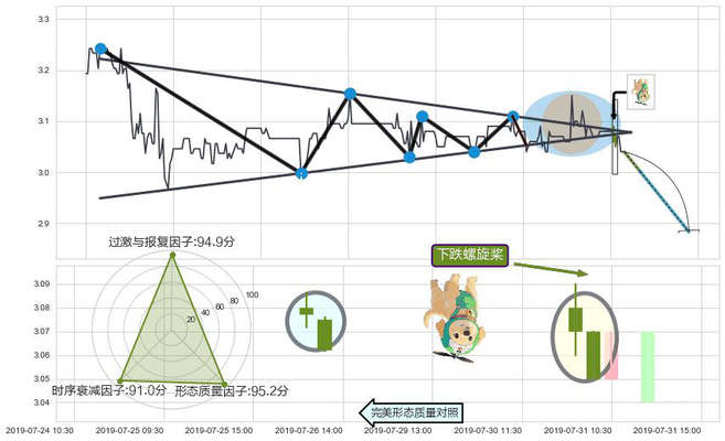 ➢ 🕰 价格走势在2019-07-30 15:00:00至2019-07-31 09:30:00期间形成下跌螺旋桨,残存影响值:-7.64