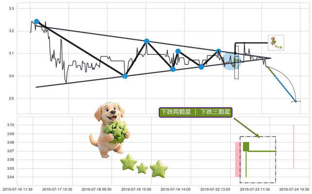 ➢ 🕰 价格走势在2019-07-22 15:00:00至2019-07-23 11:30:00期间形成下跌两颗星 | 下跌三颗星,残存影响值:-3.44