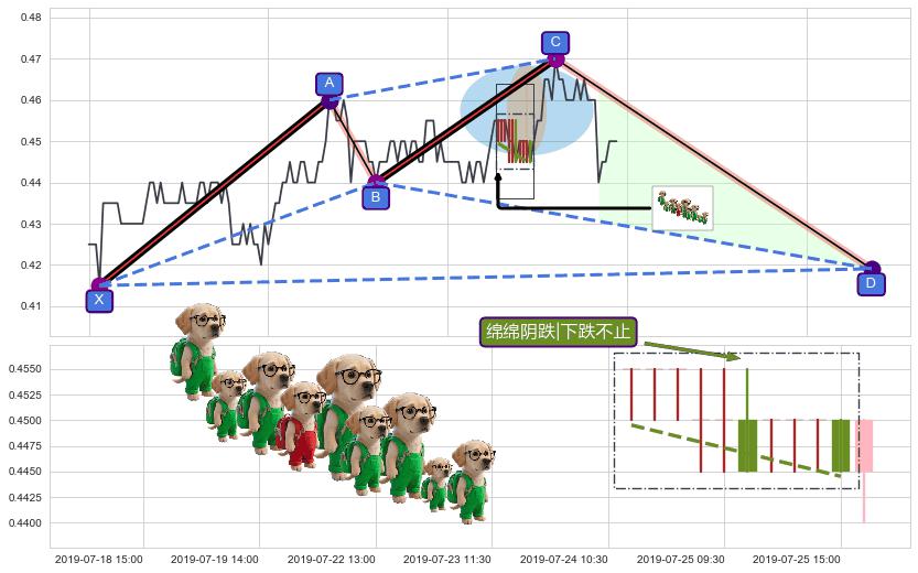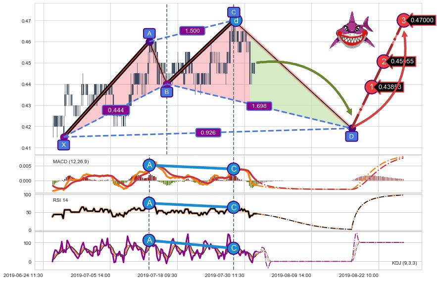 ➣ 未完成【鲨鱼】形态起点X: 06-26:15, 已到达C点: 07-29:09, 预测最终D点: 08-16:14, 共211交易小时