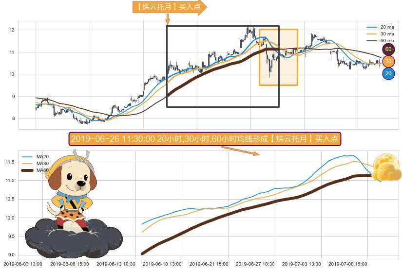 ⚀ 2019-06-13 14:00:00小时-2019-07-09 15:00:00小时显现 20小时-30小时-60小时均线 【烘云托月】买入点 看多信号,后市看涨,买入