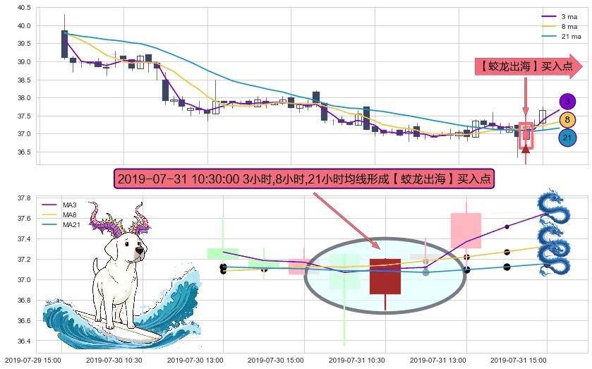 形态多维评估: ⚀ 2019-07-31 10:30:00小时显现 3小时-8小时-21小时均线 【蛟龙出海】买入点 看多信号,后市看涨,买入