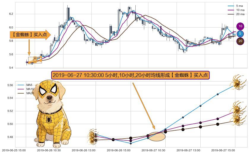 ⚀ 2019-06-27 10:30:00小时显现 5小时-10小时-20小时均线 【金蜘蛛】买入点 看多信号,后市看涨,买入