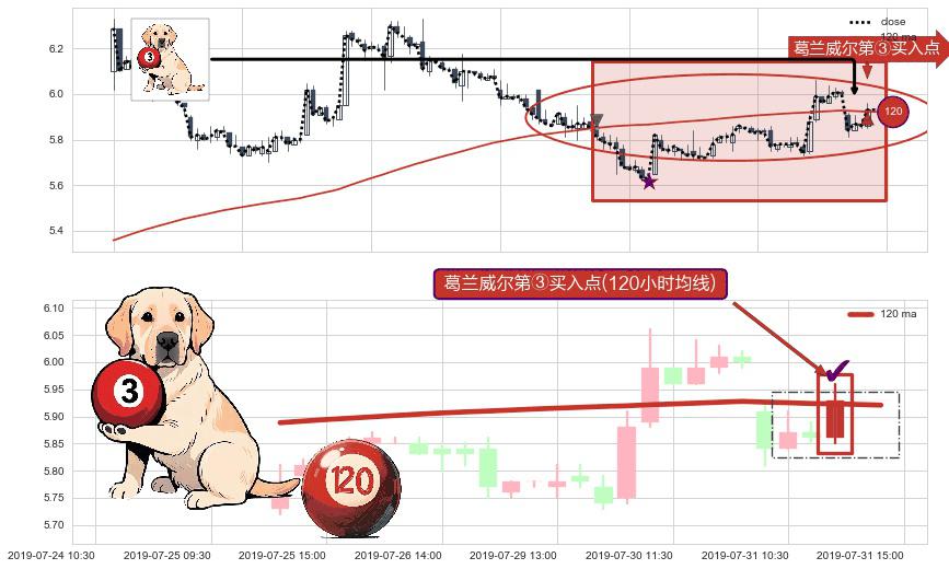 ⚀ 2019-07-31 13:00:00-小时显现 葛兰威尔均线 120小时均线 第③买入点 上升趋势的中继信号,后市看涨,买进信号