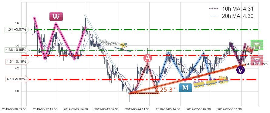 ♘ 阻力价格位4.36,可信任强度60.16%,距离最后交易2019-07-31 15:00形成的收盘价格4.32相差 +0.95%