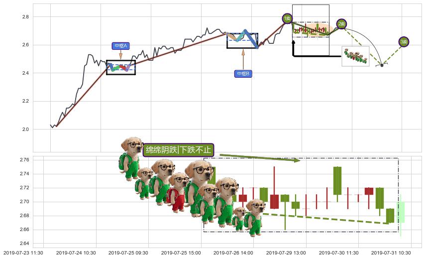 ➣ 【中枢B】:07-18:13-07-23:09,中枢由4笔构成,共16交易小时, ZG=2.680, ZD=2.630