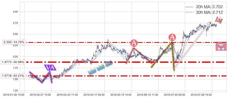 ♘ 支撑价格位2.320,可信任强度63.54%,距离最后交易2019-07-31 15:00形成的收盘价格2.720相差 -14.72%