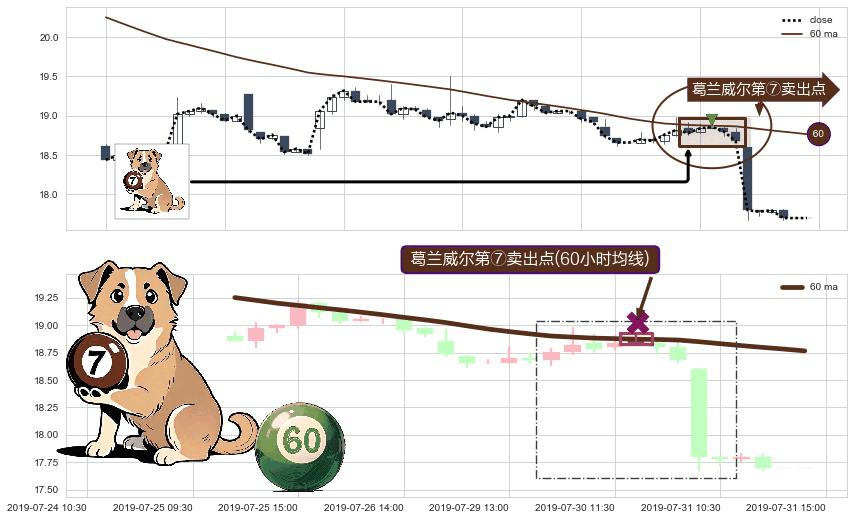 形态多维评估: ⚀ 2019-07-30 13:00:00-小时显现 葛兰威尔均线 60小时均线 第⑦卖出点 下降趋势的中继信号,后市看跌,卖出信号