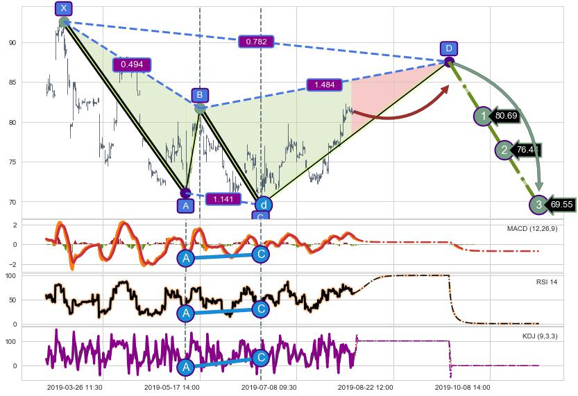 ➣ D点拟合预测价格87.58,距离最后交易收盘价格81.30相差 +7.72%