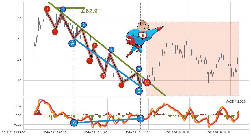 ➢ 最后的下跌趋势2019-04-04 09:30至2019-06-14 11:30:存在突破迹象,后续小反弹或者反转上涨