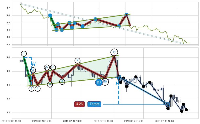 ➣ 预测:2019-08-29 14:00,【继续下探】稳定目前下跌趋势的前提下,预测价格:4.03