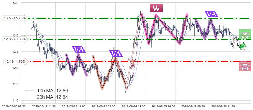 ♘ 支撑价格位12.19,可信任强度73.51%,距离最后交易2019-07-31 15:00形成的收盘价格12.80相差 -4.75%