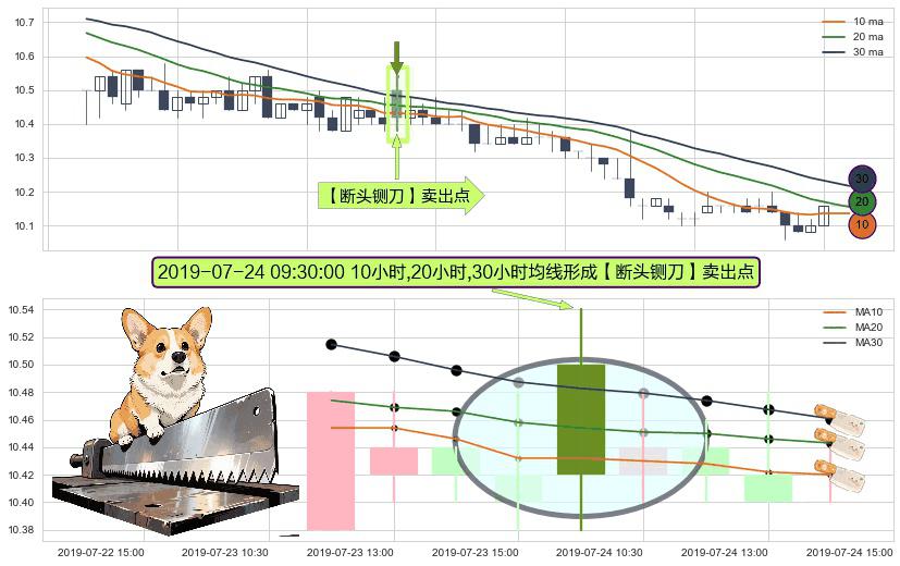 形态多维评估: ⚀ 2019-07-24 09:30:00小时显现 10小时-20小时-30小时均线 【断头铡刀】卖出点 看空信号,后市看跌,卖出