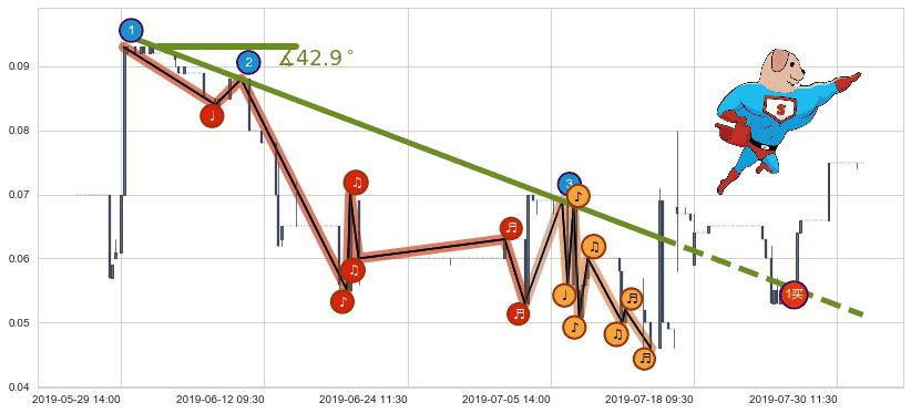 ⚔️ 2019-05-29 15:00-2019-07-15 15:00下跌趋势存在反转上涨[机会],其原下跌趋势的阻力位(0.0511875)已被突破[强支撑信号],原下跌趋势角度: 42.9˚