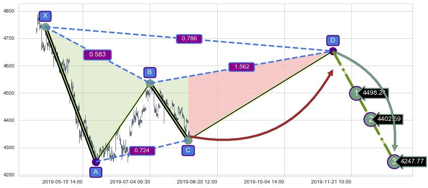 ➣ D点拟合预测价格4653.07,距离最后交易收盘价格4340.77相差 +7.19%