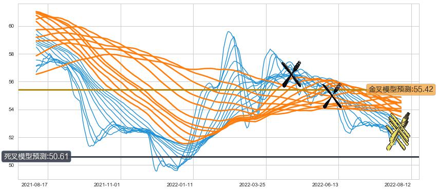 ➣ 60小时均线于(2022-04-22: 56.46)形成【死叉】基于【死叉历史模型】预测死叉后最低波谷价格: 52.49, 死叉后最低价格50.85,已经下跌超出预测最低波谷价格, 预期反弹