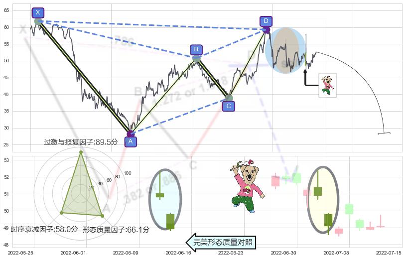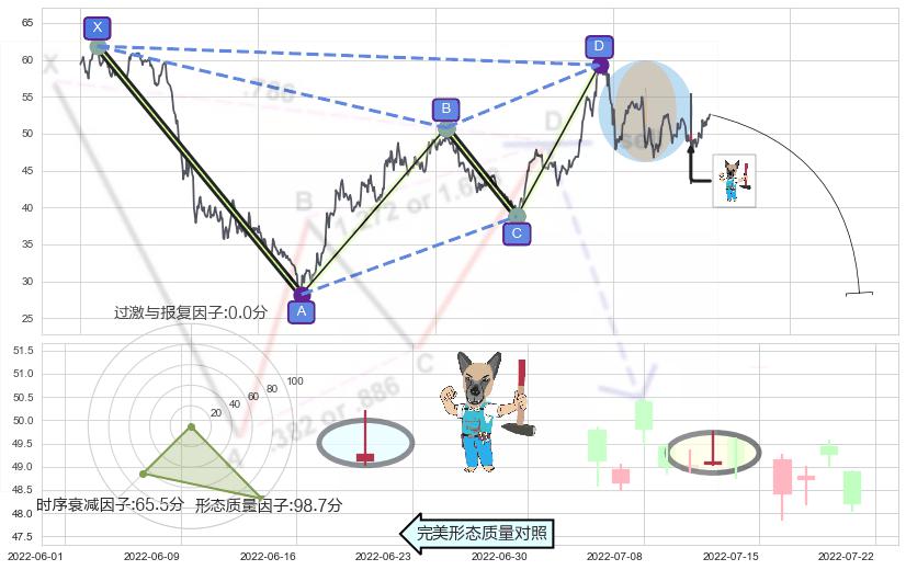 ➢ 下跌镊子线(n形磁铁) 🔜 谐波伽利d拐点下跌阻力 综合量化分数:46.44 【中性】