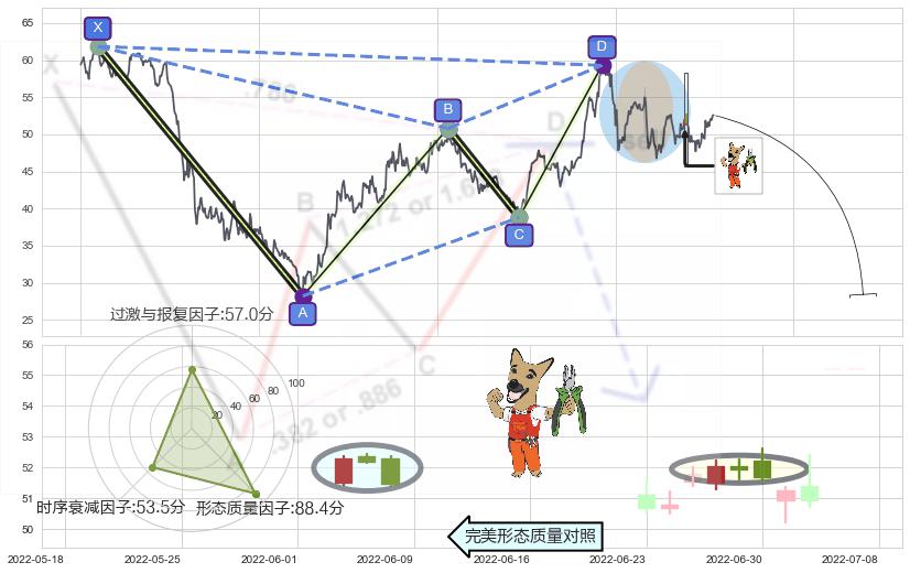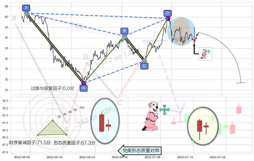➢ 下跌孕十字星 🔜 谐波伽利d拐点下跌阻力 综合量化分数:49.60 【中性】