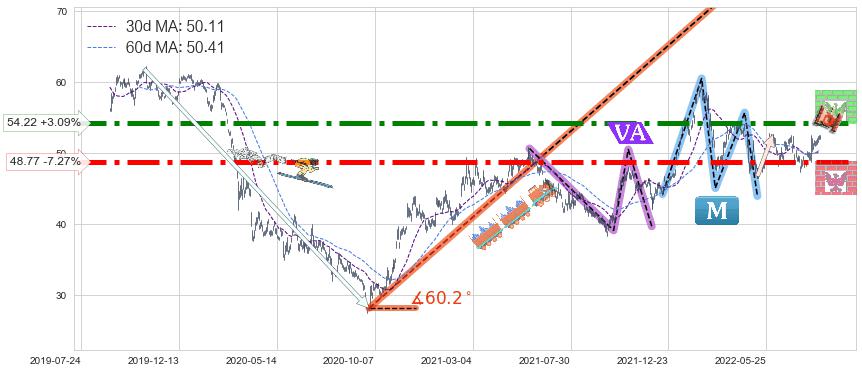 ♘ 阻力价格位54.22,可信任强度89.55%,距离最后交易2022-08-12形成的收盘价格52.60相差 +3.09%