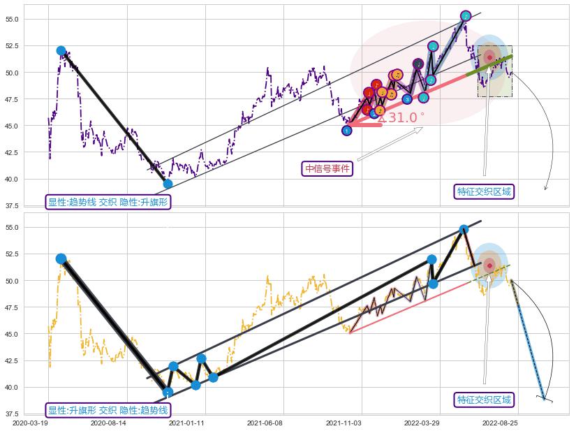 ➢ 趋势线属【中级别信号事件】升旗形属【长级别信号事件】中长周期组合信号事件,中长事件长度比37.43%