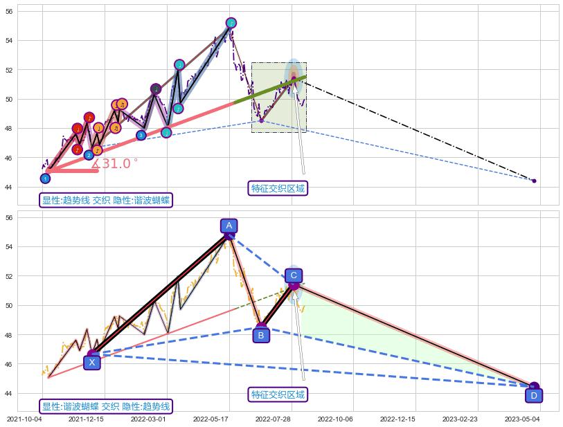 ➢ 未完成【蝴蝶】形态起点X: 2021-12-01, 已到达C点: 2022-08-01, 预测最终D点: 2023-04-27, 共353交易日