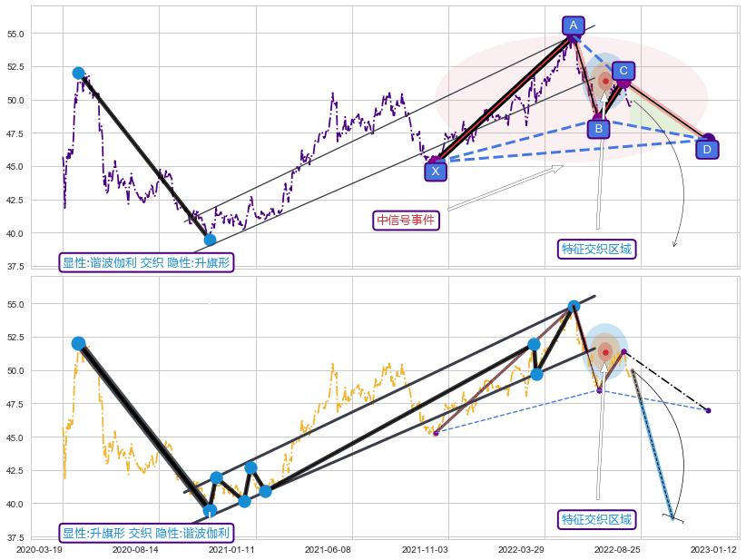 ➢ 谐波伽利属【中级别信号事件】升旗形属【长级别信号事件】中长周期组合信号事件,中长事件长度比38.75%