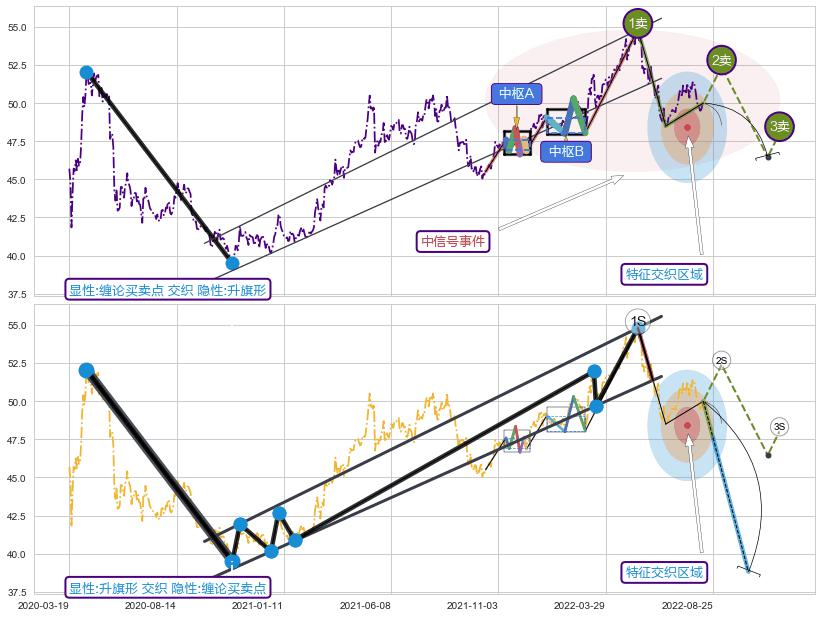 ➣ 缠论买卖点:猜想2卖持续蓄力下跌至3卖 → 下跌 → 风险信号 → 小趋势跟踪