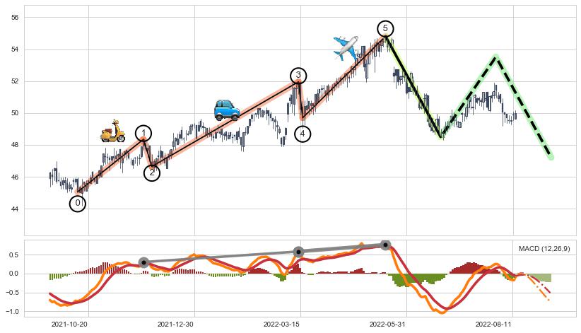 ➣ AI预测: 假定反转启动后, 第❸目标位置(2023-03-01, 54.80)