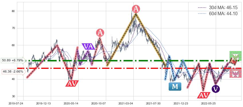 ♘ 支撑价格位46.38,可信任强度80.69%,距离最后交易2022-08-12形成的收盘价格47.65相差 -2.66%