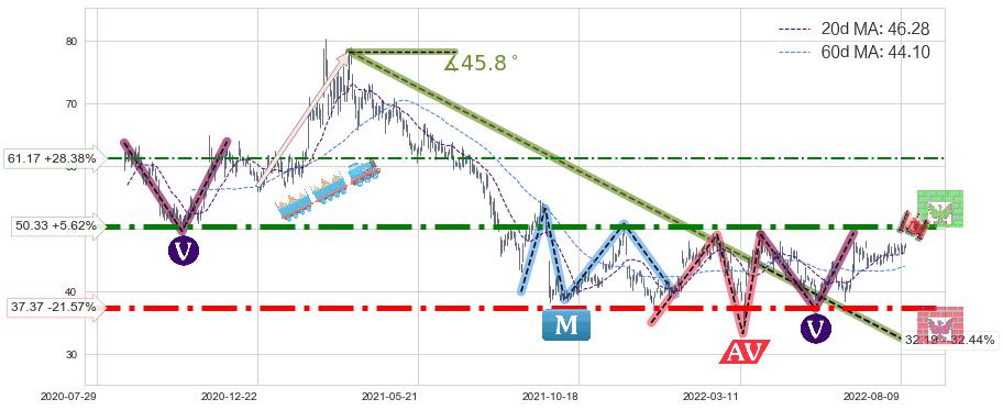 ➢ 【已确认突破】最后价格:47.65与最小【反转】第一目标价格→(2022-09-06: 58.67 )相较: 上涨空间【较大】