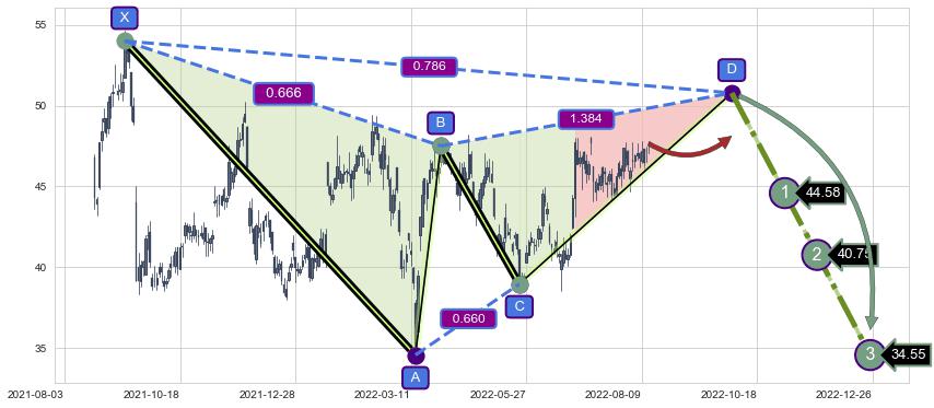 ➣ 未完成【伽利】形态起点X: 2021-09-08, 已到达C点: 2022-05-24, 预测最终D点: 2022-10-03, 共232交易日