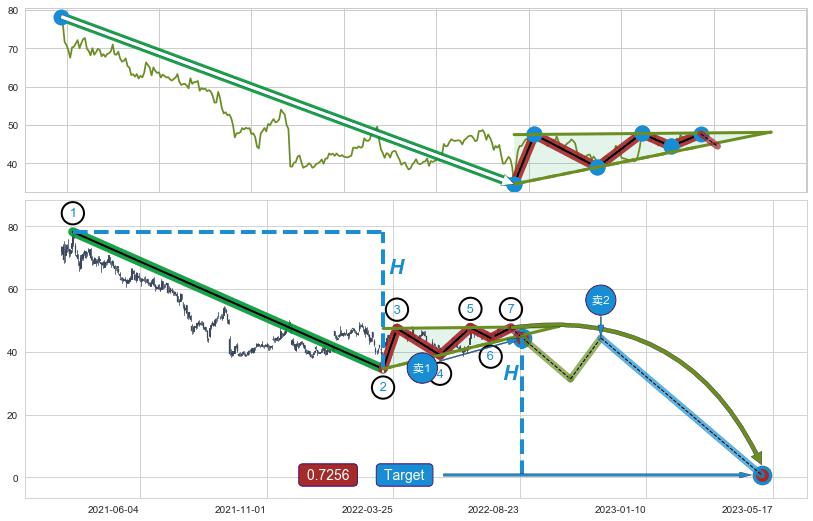 ➢ AI预测: 假定反转启动后, 第❷目标位置(2022-11-23, 40.75)