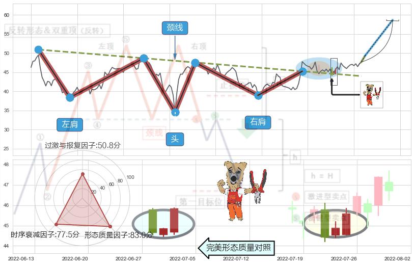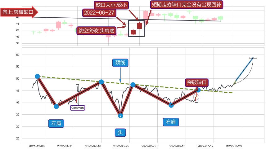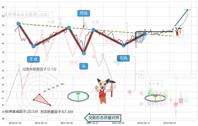 ➢ 【买1】: 激进型 买点 →(2022-06-28: 45.24 )形成突破头肩底【反转】形态
