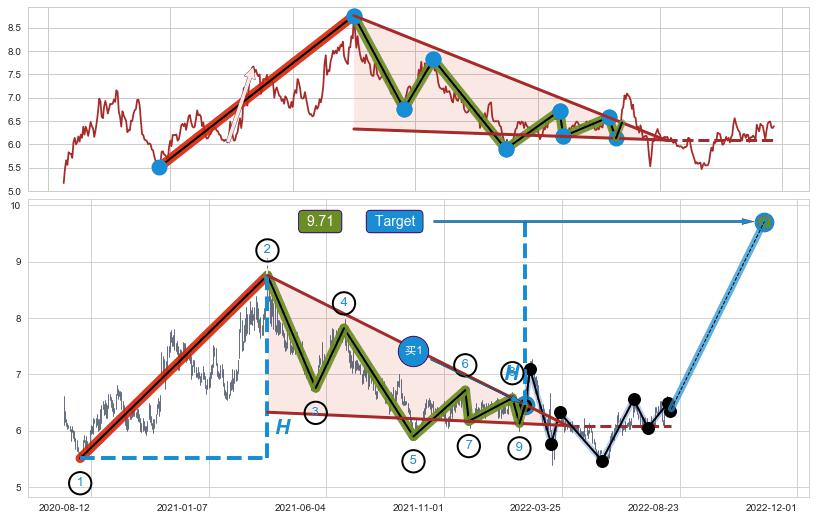 ➣ AI预测: 假定反转继续,第❷价格目标位置(2022-11-03, 7.50)