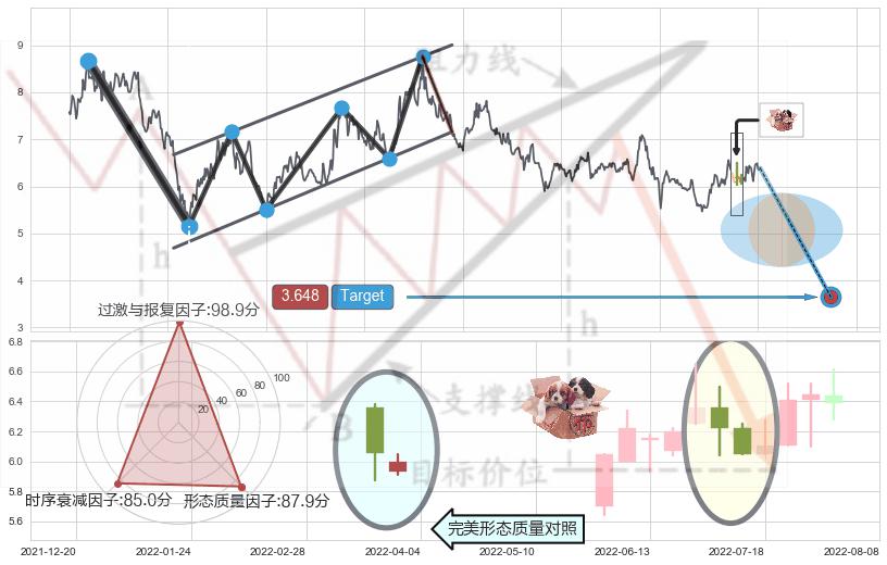 ♘ 支撑价格位5.62,可信任强度96.27%,距离最后交易2022-08-12形成的收盘价格6.39相差 -12.00%