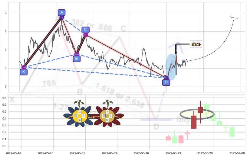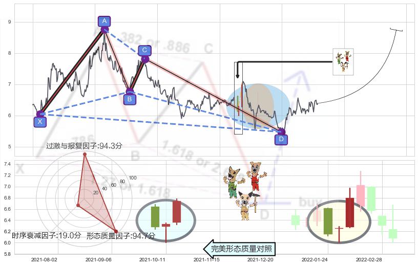 ➢ 仙人指路 🔜 谐波蝴蝶d拐点上涨支撑 综合量化分数:56.54 【偏多】