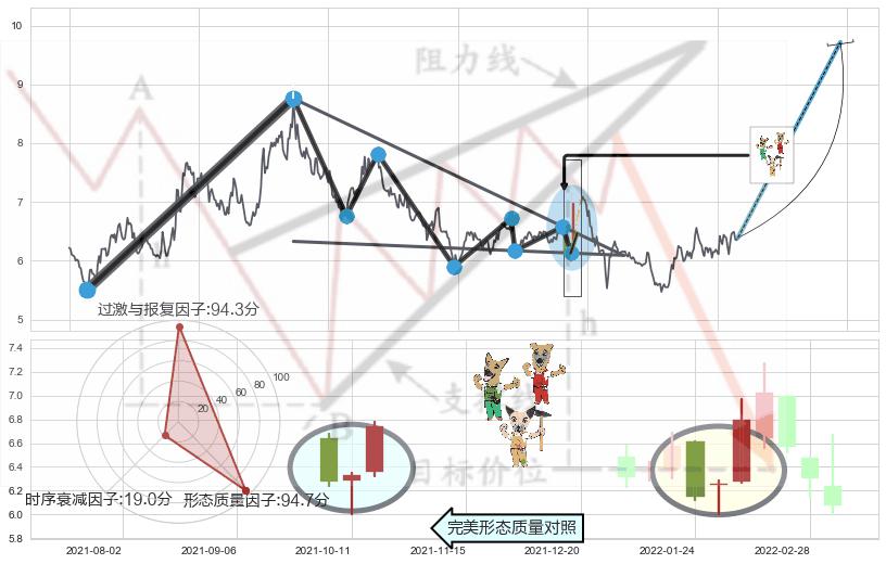 ➢ 【买1】: 激进型 买点 →(2022-02-10: 6.46 )形成突破降🚩楔型【整理】形态