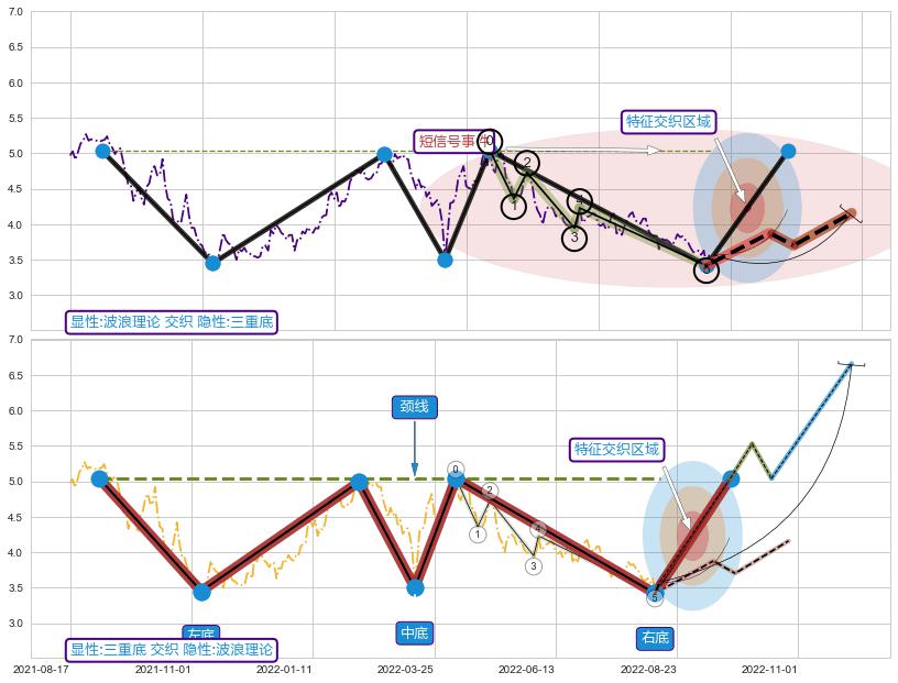 ➢ 波浪理论属【短级别信号事件】三重底属【长级别信号事件】长短周期组合信号事件, 短长事件长度比35.71%
