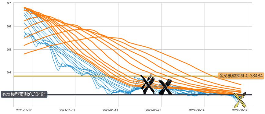➢ 60小时均线于(2022-03-30: 0.33517)形成【死叉】基于【死叉历史模型】预测死叉后最低波谷价格: 0.30335, 死叉后最低价格0.27000,已经下跌超出预测最低波谷价格, 预期反弹