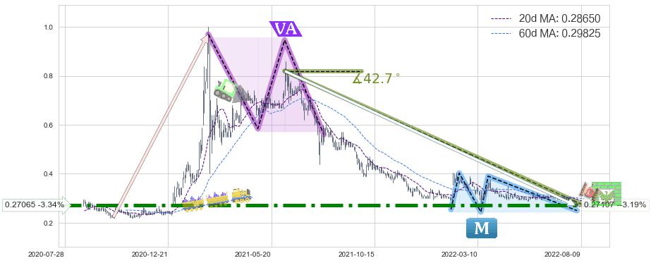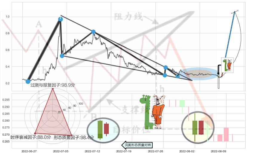 ♘ 阻力价格位0.27065,可信任强度86.71%,距离最后交易2022-08-12形成的收盘价格0.28000相差 -3.34%