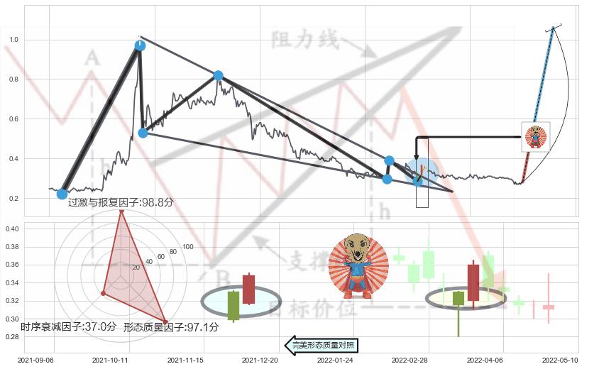 ➢ 【买1】: 激进型 买点 →(2022-03-18: 0.31086 )形成突破降🚩楔型【整理】形态