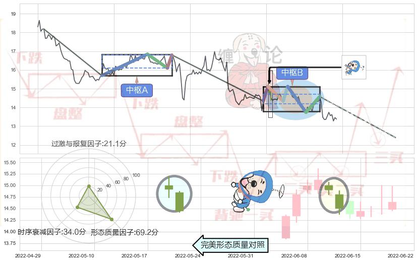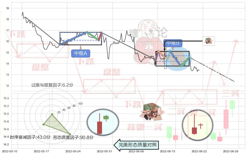 ➢ 【中枢B】:2022-06-06-2022-07-28,中枢由6笔构成,共38交易日, ZG=14.58, ZD=14.34