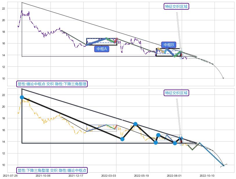 ➢ 缠论中枢点与下降三角整理信号事件周期长度级别相同,同周期信号事件