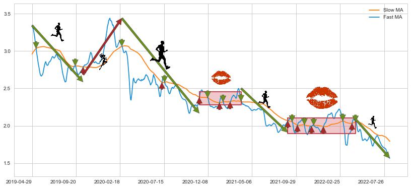 2021-09-01至2022-04-20 慢线与快线多次接触,存在上下穿越,有缠绕