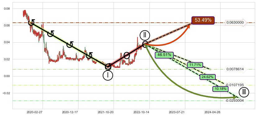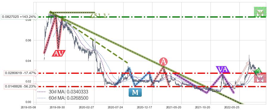 ♘ 支撑价格位0.0148826,可信任强度83.59%,距离最后交易2022-08-12形成的收盘价格0.0340000相差 -56.23%