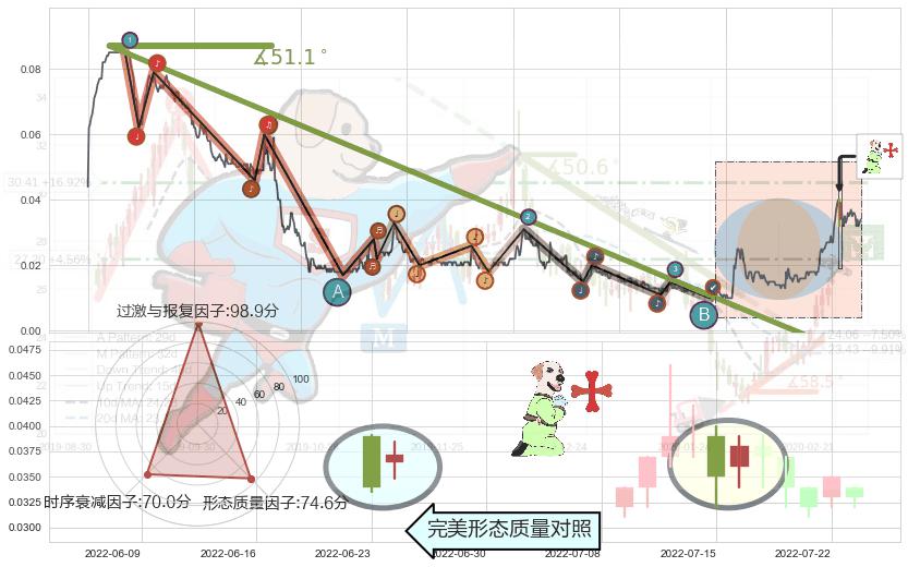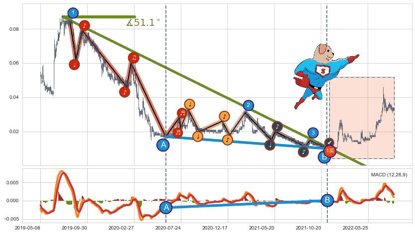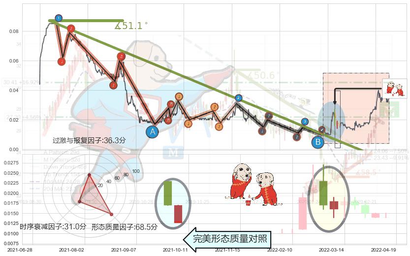 ➣ 2019-07-18-2022-02-10下跌趋势存在反转上涨[机会],其原下跌趋势的阻力位(-0.0082750)已被突破[强支撑信号],原下跌趋势角度: 51.1˚
