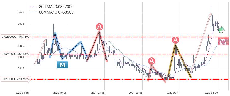 ♞ 20日均线:0.0347000,60日均线:0.0268500→ 快线>慢线