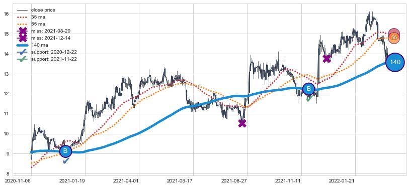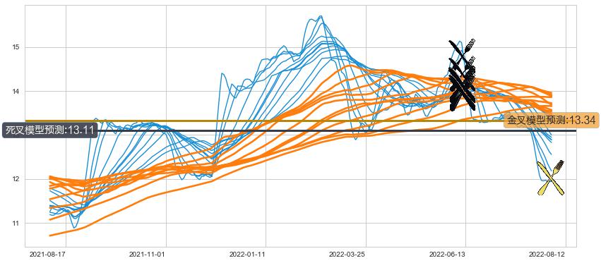 ➣ 70小时均线于(2022-06-09: 13.99)形成【死叉】基于【死叉历史模型】预测死叉后最低波谷价格: 12.40, 死叉后最低价格11.64,已经下跌超出预测最低波谷价格, 预期反弹
